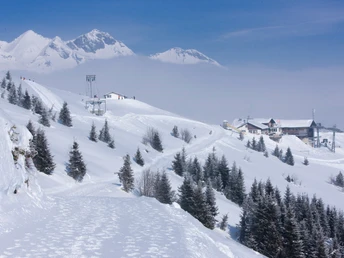 The Tschentenalp trail, which is signed with blue route markers, starts right next to the top station. On the first part you will follow the ridge of the Tschentenegg in a north-easterly direction. You will be kept company on the one side by skiers whistling past you and, on the other, by the impressive panorama towards Frutigen. At the alpine chalets on the Tschentenegg, you will leave the ridge to the north and descend through powder snow to the Tschenten forest. The uniform slope is a real pleasure to walk down in snowshoes and can be mastered in no time. A little above the edge of the forest the trail now turns to the left and, keeping to the same height, leads across to the bottom station of the Möser chairlift. This will take you back in comfort to the top station of the gondola lift.