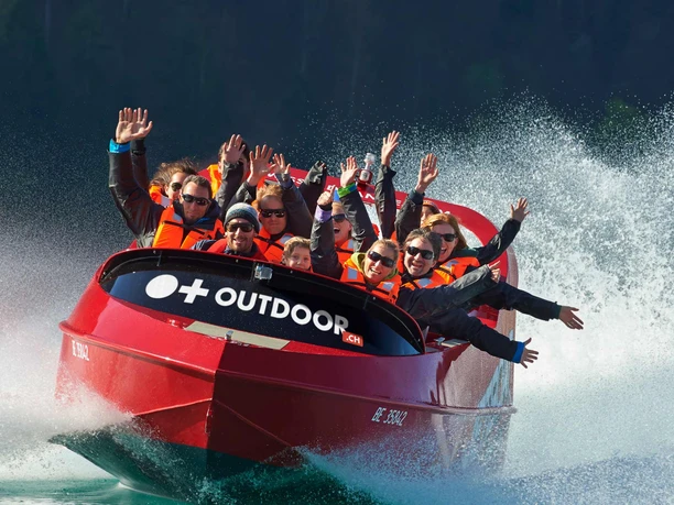 JETBOAT Interlaken has extensive experience of dealing with groups from all around the world. Discover the stunning natural beauty of the Bernese Oberland from the lake’s waters with your group. The Jetboat Tour is a soft adventure activity that will be enthuse young and old alike. In short, it is the perfect group excursion for companies, associations or stag and hen nights. A professional infrastructure, parking spaces for coaches and toilet facilities are available. The team will be happy to assist you arrange and implement your exclusive event. Further information about the various group offers is available directly from JETBOAT Interlaken.Your highlights at a glance