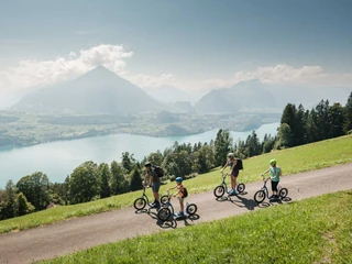 The summit of the Niederhorn is just under 2000 m above sea level and towers above Beatenberg. Whatever the time of year, you will have a fantastic panoramic view of Lake Thun, the Eiger, Mönch and Jungfrau and many other imposing mountain peaks. On a clear day, you’ll enjoy a view over the Aare valley and as far as the Jura. A ten-minute journey on the funicular railway takes you from Beatenbucht to Beatenberg, where you can take the cable car to the summit. The journey to the upper station takes ten minutes and is a memorable experience in itself. You're sure to be amazed by the Bernese Oberland’s unique landscape of mountains and lakes.