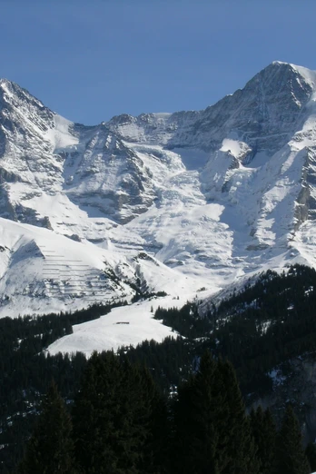 Bei der Bahnstation Grütschalp gehts zunächst in leichtem Anstieg durch Wald, danach praktisch ebenen Wegs über die verschneiten Weiden der Bletschenalp. Einzigartig ist der Kontrast zwischen dem Tiefblick in das scharf U-förmig ausgeschnittene Lauterbrunnental und dem weiten Panorama der Gipfel, die das Tal abschliessen. Wuchtig erhebt sich aus dem Talgrund der Schwarzmönch, dahinter steht die von den beiden Silberhörnern majestätisch geschmückte Jungfrau. Im Osten von ihr liegen Eiger und Mönch zum Greifen nahe, im Westen setzt sich der Gipfelkranz mit Äbeni Flue, Mittaghorn, Grosshorn und Breithorn fort. Auf der gegenüberliegenden Talseite liegt der Wintersportort Wengen und darüber die Männlichenkette. Wengen ist weltbekannt geworden durch die Skiabfahrtspiste vom Lauberhorn ins Dorf herunter, die von hier aus praktisch in voller Länge eingesehen werden kann. Nach der Alphütte Im mittleren Prast biegt der Weg rechts ab und führt zum Staubbachgraben. Von den Wassermassen, die im Sommer üppig über die Mürrenflue zu Tal stürzen und die seinerzeit Goethe zu seinem Gedicht «Gesang der Geister über den Wassern» inspirierten, ist im Winter, wenn überhaupt, nur ein dürftiges Rinnsal zu erahnen. Durch dunklen und schattigen Wald gehts weiter zur Winteregg. Die Route verbleibt auch hier auf der westlichen Seite der Bahnlinie.