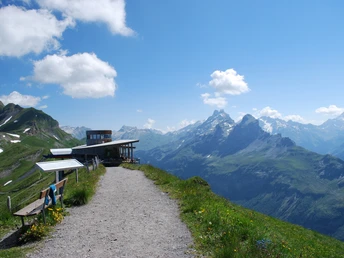 Allein die prächtige Aussicht von Planplatten aus würde einen Ausflug in diese Gegend lohnen. Ob vom Aussichtspunkt oder vom Alpen tower, dem neuen Panoramarestaurant, aus, die Szenerie ist gleichermassen beeindruckend: Fast senkrecht in der Tiefe liegen die Hütten von Schlafenbielen auf den Arnialpen, ganz unten das tief eingeschnittene Gental. Die Rundsicht ist überwältigend. Gipfel reiht sich an Gipfel!