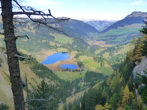 From Geltenhütte, the hike leads through alpine pastures, rocky sections, and finally through forest over "Usseri Gälte", the "Gältetrittli", "Chüetungel" and the "Tungeltrittli" to Vorsass. Several exposed sections must be passed, some equipped with ropes. Surefootedness is required. With luck, marmots can be spotted. At Vorsass, the route leads after a hairpin bend over an alpine pasture and on a forest road back to the post bus stop Legerlibrügg at Lauenensee.
