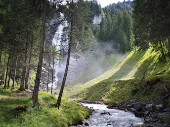 From the post bus terminus at the Iffigenalp mountain house, you always hike downstream towards Lenk and soon reach the Iffigbach. A wonderful hiking trail follows the wild stream. Here and there the water disappears behind rocks, only to reappear immediately and rush even closer to the path. Above the Iffigfall, you leave the riverbank and descend in a wide arc to the foot of the waterfall. Here the Iffigbach plunges about 100 meters down into the valley. Accordingly, the spray that spreads tirelessly at its foot is great. The hike then continues along the Iffigbach. Shortly after, you pass Pöschenried and subsequently two inviting resting places. At the end of the hike, shortly before Lenk, it is recommended to make a stop at the Lenkersee. The lake is always well visited by walkers and is a popular place to linger.Â