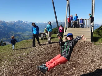 It is recommended to start the hike with a five-minute detour. This leads from the mountain station past the mountain house along the ridge to the summit of Niederhorn, which offers a wonderful panoramic view of Lake Thun, the Alpine panorama, and Justistal. On the flat 15-minute path to the small lake in the Hochseil, the magnificent panorama is always visible. From afar, you can already see the alpine huts on Oberburgfeld. In July and August, there is a refreshment option there. You might also watch the alpine dairyman making cheese. If you are lucky, you will spot eagles, bearded vultures, chamois, foxes, or in the lower part, also roe deer. The path continues downhill, first through open forest to Alp Unterburgfeld, where the wonderful view can be enjoyed: Waldegg, part of Lake Thun, and the area from Interlaken to Wilderswil are visible. A relatively steep mountain path leads down through the forest. If you are not afraid of heights, you can make a detour to Birenfluh and enjoy the wonderful view of Beatenberg. This detour takes 45 minutes. When leaving the forest, the village area Waldegg and Spirenwald are visible from a distance. The PostBus goes back to Interlaken or to the Niederhorn valley station. Public transport provider STI.