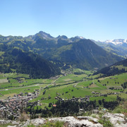 Nach einem kurzen Aufstieg wird die Hornflue westwärts umgangen, und alsbald ist die Sesselbahn-Bergstation Horneggli, in Sichtweite. Die Aussicht ins Saanenland, hinüber zu den Gastlosen und ins Simmental ist wunderbar.
