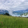 The Chalet Bambi is a small Bijou with a special and homelike charm. It is quiet with beautiful views of the Swiss Alps and Lake Thun. Impressive to see is the triumvirate Eiger, Mönch and Jungfrau. In the Bambi you will find on the ground floor a cozy living room with open kitchen and a large tiled stove, a room with a double bed, toilet/bath and two balconies. In the basement there is a room with a double bed and a room with additional sleeping possibility and toilet/shower. A closed garage and a car parking space, an inclose garden with seating and a large children's swing complete the great offer.
