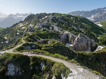 Von der Bergstation Leiterli folgen wir dem Höhenweg in Richtung Trütlisbergpass. Bei der Wegkreuzung P.1983 biegen wir rechts ab und besteigen kurz darauf links haltend den Gipfel der Stübleni (man kann diesen auch unterhalb queren). Vom Gipfel hat man einen tollen Blick auf die Gryden, deren Begriff wohl auf Chride (Kreide) zurückzuführen ist. Entstanden sind die Versickerungstrichter (auch Dolinen genannt) durch das langsame Auflösen des weissen Gipsgesteins durch Regen und unterirdische Abflüsse.