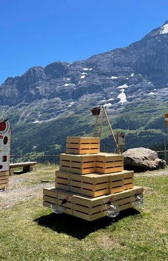 Auf dem Weg durch die traumhafte Szenerie ist die imposante Kulisse von Eiger, Schreck- und Wetterhorn immer mit dabei. Sein krönendes und leckeres Finale findet der Öpfelchüechliweg beim Bergrestaurant Brandegg. Hier werden die besten Öpfelchüechli der Welt zubereitet.