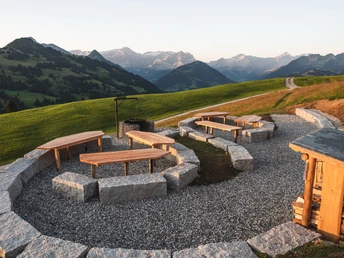 Saanenmöser liegt an der (von vielen wohl kaum wahrgenommenen) Wasserscheide zwischen Saane und Simme. Fliessen die Wasser des Chouflisbachs in die Saane, so wendet sich andererseits die Kleine Simme der Simme zu, welche sich mit der Kander vereint in den Thunersee ergiesst. Halbwegs zwischen Laupen und Aarberg treffen die beiden Wasser in der Aare wieder zusammen.Von der Station auf dem Bergsträsschen am Golfhotel les Hauts de Gstaad vorüber und längs des Bergmattegräblis hinauf zur Bergmatte, wo man die Route Schönried–Abländschen kreuzt. Nun auf einen Fahrweg hangwärts abschwenken. In mehreren Schleifen zieht sich dieser zur Alp Grossi Vorschess empor (nach Planihubel–Rellerligrat 1h10, Bergwanderweg). Etwas oberhalb der Alphütten zweigt ein Fahrweg zu den Planialpen ab, wo im Verlaufe des Sommers noch der «Suffsunntig», eine im Saanenland traditionelle (oft mit einer Bergpredigt verbundene) Älplerchilbi, zelebriert wird. Dabei werden auch die einheimischen Köstlichkeiten «suri u süessi Nidle», «Schluck» (frischgeronnene Milch), «Chüechleni», «Hamme», «g’hobleta u linda Saanechies» (Käse), «g’haahigs Brot» (Butterzopf) und «Nidelgaffi» (Kaffee mit gekochtem Rahm) angeboten. Vom behaglichen Einschlürfen der Milchspeisen soll der «Suffsunntig» seinen Namen bekommen haben. Wahrscheinlicher ist jedoch die Ableitung von der «Suffi», das ist die nach dem Ausscheiden von Käse und Ziger nochmals aufgewärmte Schotte, die ehemals jedem Gast dargereicht wurde.