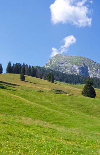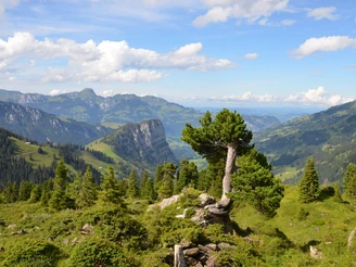 Diese Wanderung liegt auf dem Boden der Gemeinde Diemtigen, mit 130 km2 flächenmässig die fünftgrösste des Gemeinde des Kantons Bern. Der Schweizer Heimatschutz verlieh 1986 Diemtigen den Henri-Louis-Wakker-Preis als Anerkennung des Schutzes und Pflege der Landschaft, Ortsbilder und Bausubstanz. 2011 wurde das Diemtigtal mit dem Label Regionaler Naturpark ausgezeichnet. Tummeln sich im Winter die Skifahrenden am Wiriehore, so geht es im Sommer auf den Wanderwegen beschaulicher und geruhsamer zu und her. Bei der Bergstation der Sesselbahn Nüegg wählt man die Route Underi Heitere, Wirie, Wiriehore. Abwärts auf Belag wird bei Underi Heitere der tiefste Punkt der Wanderung erreicht. Aufwärts führt nun die Route über eine Fahrstrasse, über Alpweiden und durch Wald an der Bodeflue vorbei zur Alp Wirie. Hier orientiert man sich an der Wegweiserangabe Abendmatte. Vorbei an der Abzweigung auf das Wiriehore führt die Wanderung auf den Sattel Pt. 2031. Hier schliesst sich der Abstieg über Gurbs und Mettenberg zur Abendmatte an. Dem Hang entlang ohne grössere Höhenunterschiede über Tubelfärrich, durch Alpweiden abwärts am Bergrestaurant Schwarzenberg vorbei schliesst sich der Kreis der Rundwanderung bei Nüegg.