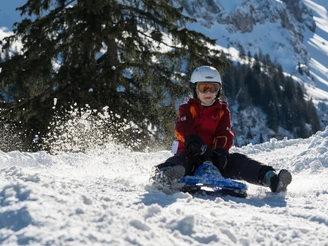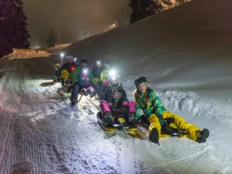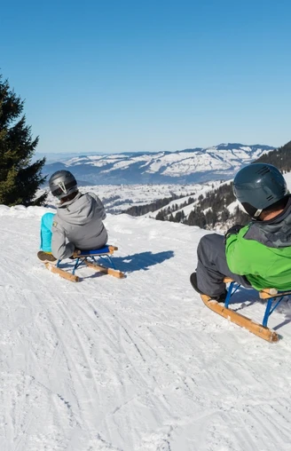 Schlitten, gutes Schuhwerk, der Witterung angepasste Kleidung, Handschuhe, Mütze und Helm, Verpflegung inkl. warmem Getränk, Notfallnumero.