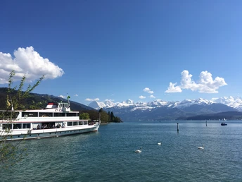Am Wegweiser beim Bahnhof Thun ist das Ziel der Wanderung Gwatt bereits vermerkt. Vorerst geht es der Schiffländte entlang Richtung Thunersee. Schon nach einer kurzen Strecke gelangt man über einen Holzsteg zum Standort ehemaligen Bahnhofs Scherzligen. Von 1861 (der Eröffnung der Bahnlinie nach Spiez) bis 1893 war Scherzligen Endbahnhof der Linie von Bern her. Für Reisende und Güter erfolgte die Weiterreise mit Dampfschiffen. Tafeln erklären die «Scherzliger Verkehrsgeschichten». Wenig weiter erscheint die Kirche Scherzligen, erbaut vom 10. bis 12. Jahrhundert. Sie ist beliebt für Hochzeitsgottesdienste. Für Pilger auf dem Jakobsweg Einsiedeln-Genf bildet sie einen wichtigen Etappenort. Gleich anschliessend erreicht man den Schadaupark mit dem gleichnamigen Schloss (erbaut von 1846). Im Park befindet sich das Wocher-Panorama, ein aus dem Jahr 1814 stammendes Rundbild von Thun. Seeseitig fällt der Blick auf das Dreigestirn Eiger, Mönch und Jungfrau. Ausgangs Schadaupark ist wenige Meter der Seestrasse entlang zu gehen. Nun heisst es links auf den neu angelegten Uferweg abzubiegen. Wenig später mündet er in den Rougemontweg. Nochmals geht’s einen kurzen Abschnitt der Seestrasse entlang. Danach geht man an der Schiffswerft, dem Strandbad (von den Thunern Strämu genannt), dem Stadion Lachen vorbei in den Pfaffenbühlweg. Der Strandweg führt nun in Ufernähe und auf einem Steg im See zum Bonstettenpark. Die im 18. Jahrhundert angelegte Gartenanlage des Landsitzes ist ein beliebtes Naherholungsgebiet für Jung und Alt. Dem Gwattlischemoos entlang geht es zum Ziel der Tour, der Bushaltestelle Gwatt, Moos.