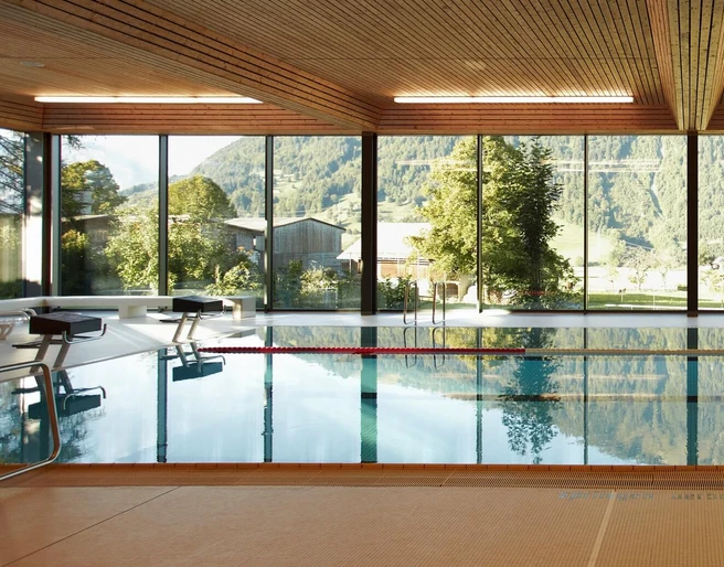 Sentez la force secrète de l’eau et accordez-vous une pause de détente et de sérénité. Aménagée avec goût, la piscine couverte d’Aeschi dispose d’un bassin de natation de 25 m. Dépensez-vous tout en savourant l’ambiance chaleureuse qui vous entoure. Après votre séance de natation, vous pourrez vous délasser dans l’agréable bassin bouillonnant à 32-34° C. Un bassin d’apprentissage et des équipements de jeu sont prévus pour les enfants. En été, vous pourrez prendre un bain de soleil sur la pelouse extérieure. Venez vivre un moment de détente totale dans cette oasis de bien-être dotée d’équipements modernes. L’espace bien-être varié vous surprendra avec son sauna finlandais, son sauna bio, son bain de vapeur, sa grotte avec cascade et de nombreux équipements qui vous feront du bien. Laissez votre esprit vagabonder dans la salle de repos douillette ou offrez-vous un massage. Le bistrot et le lounge extérieur apaiseront votre faim et votre soif avec de délicieux snacks et des boissons rafraîchissantes. À la piscine couverte d’Aeschi, la détente, le sport et le plaisir sont garantis.