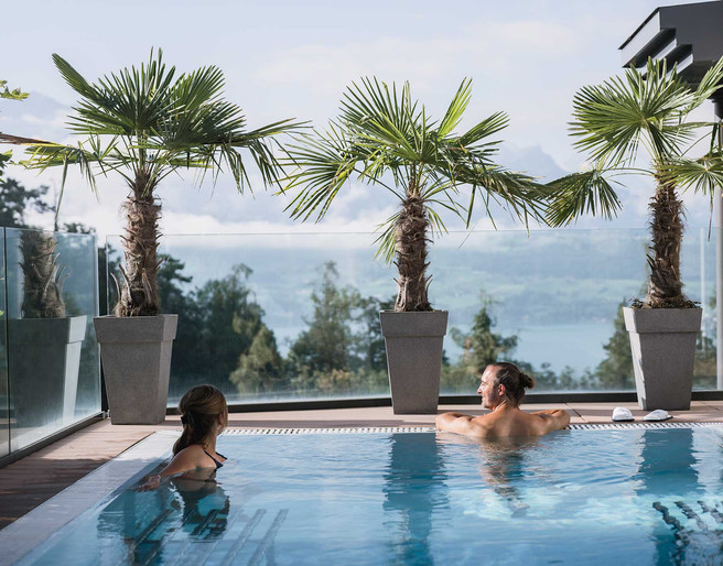 Le bain d’eau saline vous apportera calme et détente. La vue panoramique depuis le jacuzzi en plein air, où vous pourrez vous délasser comme jamais, est magnifique. Outre les bains, le Solbadhotel de Sigriswil met à votre disposition un corridor Kneipp, une salle de fitness, plusieurs salles de massage et de soin, ainsi qu’un espace sauna douillet dans le style chalet. Détendez-vous dans le sauna bio aux herbes «pierre salée» ou dans le bain de vapeur aromatique. Vous aimez l’intimité? Réservez une place dans le «spa privé», avec espace de repos, bain de vapeur et douche effet pluie.