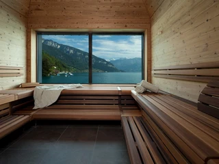 Unique, l’espace bien-être du Parkhotel Gunten est situé directement au bord du lac de Thoune. Pendant que vous vous délasserez dans le sauna, vous profiterez de la vue sur les eaux bleues du lac entouré par les Alpes de l’Oberland bernois.