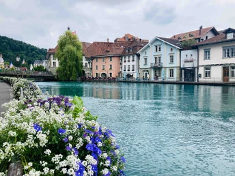 Hintergrund: Das Schloss Thun mit seinen vier markanten Türmen ist ein beeindruckendes mittelalterliches Bauwerk. Es wurde im 12. Jahrhundert von den Zähringern erbaut und ist heute ein Museumsschloss von nationaler Bedeutung. Eine Zeitreise durch 800 Jahre Geschichte ist möglich.
