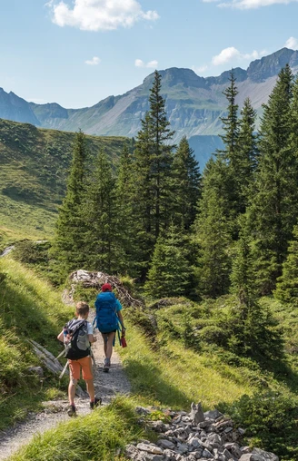 Der Abstieg bis P.2279 erfolgt auf gleichem Weg. Bei der Wegkreuzung steigt man links ab bis hinunter zum Elsigsee. Es lohnt sich noch etwas Zeit einzuplanen, um an dem kleinen Bergsee eine (Bade-)Pause einzulegen. Auch Grillstellen gibt es nahe dem Ufer mehrere. Der Rückweg zur Bergstation kann auf verschiedenen Routen erfolgen. Wir empfehlen den schönen Naturpfad dem See entlang und über Punkt 1909 hinunter zum Berghaus. Unweit davon befindet sich der Brandsee welcher im Winter zur Beschneiung dient und im Sommer als Badesee genutzt wird. In wenigen Minuten erreicht man über das Berghaus Elsigenalp die Seilbahn.