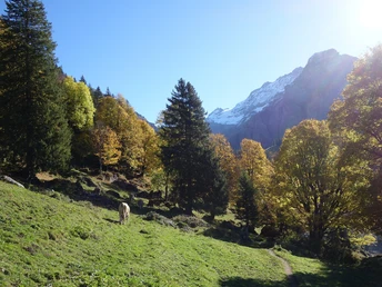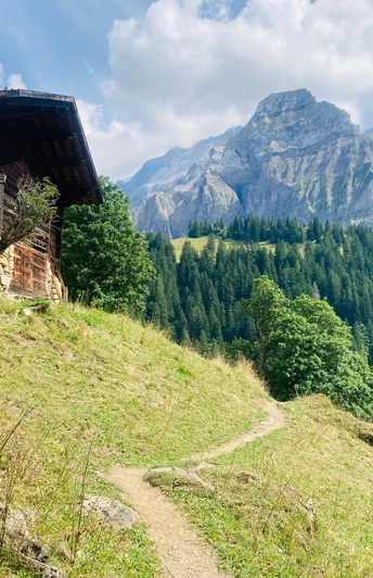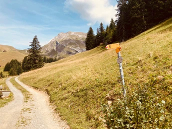 Au départ de la randonnée, à l’arrêt de bus Bühlberg, il faut d’abord suivre l’indication vers Metsch. Le panneau indique aussi la destination Simmenfäll, mais ce parcours passe par le Metschhore. Une route carrossable passe devant deux stations de télésiège jusqu’à Metschmaad. La vue y est impressionnante. Ensuite, on suit le sentier vers Metsch. Après quelques minutes, on atteint un chemin d'alpage. Il faut ici suivre le sentier de montagne vers Nessli. Le chemin traverse la forêt jusqu’au Loueneweidli. Un endroit de repos y invite à la pause. On peut déjà entendre le bruissement des chutes de la Simme. On poursuit d'abord à plat sur un alpage, puis à travers la forêt. Après avoir traversé le ruisseau Bummerebach, le sentier monte raide. En quittant la forêt, on randonne sur un chemin d'alpage jusqu’au petit restaurant de montagne Nessli. Puis la descente commence, avec l'indication Simmenfäll. Principalement sur des routes d'alpage, par moments sur un sentier, on atteint Stalde. À partir d'ici, le parcours est à nouveau signalé comme sentier de randonnée. Au pont de Barbara, la vue sur les puissantes chutes de la Simme vaut le coup d’œil. En continuant la descente, la balade conduit à l’arrêt de bus Simmenfälle et au restaurant du même nom.