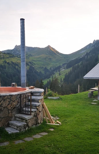 Le départ se fait à la charmante gare de Weissenburg. Avec la maison de la fontaine où vous pouvez déguster l'eau des célèbres sources de Weissenburg, elle forme un bel ensemble de la fin du siècle dernier. Nous flânons tranquillement sur la route à travers la forêt naturelle et remarquons les murs de pierre sèche artistiquement construits, restaurés avec soin en 2013. Sur le site de l'ancien Grand Hôtel, nous laissons agir ce lieu impressionnant, qui, à l'époque de la culture thermale, était un point de rencontre de la haute aristocratie et connu dans toute l'Europe. L'association thermale de Weissenburg, avec ses bénévoles, est responsable de l'entretien du site et de l'aire de repos, et a ici créé un pavillon d'information sur l'histoire mouvementée des thermes dans le Simmental.