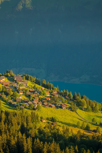 Der Start der Tour ist beim Bahnhof in Brienz. Nachdem du das schöne Dorf Brienz hinter dich gelassen hast, näherst du dich entlang des Brienzersees dem herausfordernden Aufstieg. Dieser erste Streckenabschnitt ist der einzig flache Teil der Tour. Danach ist die Route von einer stetigen Steigung geprägt. Es geht hoch hinaus bis auf die Axalp, die 1'535 m über Meer liegt. Die asphaltierte Strasse kurvt sich durch Waldabschnitte und grüne Weiden, wo traditionelle Alphütten und schöne Chalets das Landschaftsbild zieren. Während du die malerische Gegend geniesst, rücken Anstrengung, Schweiss und die harten Waden in den Hintergrund. Unser Tipp: Verlängere deine Fahrt bis zum Bergrestaurant Hilten (1'706 m. ü. M.), das oberhalb des Dorfkerns auf einem Hügel thront. Von hier oben hast du eine einmalige Sicht auf die umliegenden Berge und den Brienzersee. Stärke dich mit einer feinen Rösti und einem erfrischenden Getränk, bevor du auf demselben Weg die Rückfahrt antrittst.