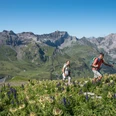 Qui dit que le Morgenberghorn doit être gravi le matin? Le point culminant de la chaîne du Leissiggrat, qui offre d’ailleurs une vue panoramique — est également idéal pour un tour d’après-midi d’automne et offre aux randonneurs un plaisir particulier sous la forme d’une expérience de sommet en soirée. Depuis le terminus du car postal à Saxeten, suivez la petite route en direction de la vallée pendant quelques minutes. Un chemin de montagne bien entretenu bifurque ensuite vers la descente et mène alternativement à travers des bois ombragés et des prairies de montagne odorantes. Au fur et à mesure que l’on prend de la hauteur, la vue s’étend de plus en plus sur l’ensemble du bassin du lac de Brienz. En passant par les cabanes de Mittelberg, vous atteignez le Rengglipass, le passage du Saxettal au Suldtal. Les sommets saisissants du Dreispitz viennent couronner la petite vallée pittoresque. Du haut du col, le sentier bifurque vers le Morgenberghorn en direction du nord. L’ascension est très raide par endroits. Après une côte de terrain exposée, des passages tout aussi exposés se succèdent sur le flanc ouest du Horn. Un câble fixé le long de la pente aide à la traversée. Néanmoins, ces passages clés exigent un pied sûr et pas de problèmes de vertige. Après une dernière montée sur un agréable chemin herbeux, on aperçoit l’étendard avec les armoiries suisses et bernoises au sommet – et vous serez immédiatement captivé par la vue panoramique époustouflante. Au nord, la vue s’étend sur les lacs de Thoune et de Brienz, sur le Niederhorn, le Hohgant et la chaîne de l’Augstmatthorn et du Brienzer Rothorn, tandis qu’au sud, les massifs rocheux de la Schwalmere et derrière eux la chaîne des Hautes-Alpes bernoises sont tout simplement fascinantes. Le retour dans la vallée suit le même itinéraire.