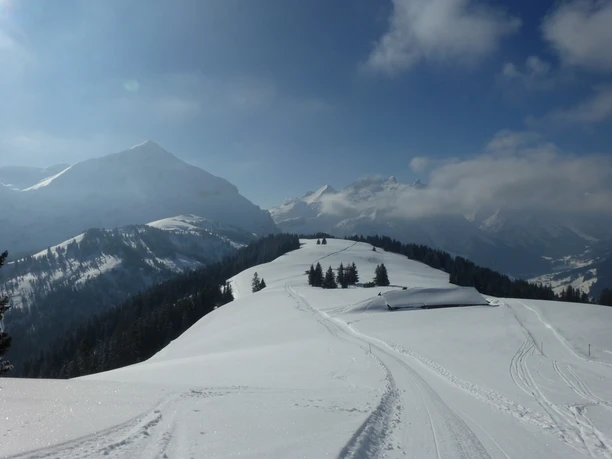 Une des randonnĂ©es hivernales les plus impressionnantes du canton de Berne se trouve sur la Wispile près de Gstaad. La montagne, apprĂ©ciĂ©e en Ă©tĂ©, offre Ă©galement en hiver de très beaux sentiers avec un panorama magnifique. Le tĂ©lĂ©phĂ©rique ne fonctionne cependant que pendant les fĂªtes et en fĂ©vrier (consultez les horaires). Depuis la station supĂ©rieure, le sentier panoramique hivernal suit la large et longue crĂªte de la Wispile jusqu'au Chrinetritt. Sur ce chemin bien prĂ©parĂ© et large, on profite d'une vue fantastique sur le paysage montagneux enneigĂ©. Ă€ mi-chemin vers le Chrinetritt, Ă l'alpage Vordere Höji Wispile, il est possible de dĂ©guster dans un grand caquelon Ă fondue son propre fromage fondu dans un cadre magnifique. Le sac Ă dos contenant tous les ingrĂ©dients peut Ăªtre obtenu Ă la station supĂ©rieure (rĂ©servation nĂ©cessaire au 033 744 11 15 !). Ă€ la fin de la crĂªte de Wispile, le sentier panoramique hivernal se termine. Pour ceux qui prĂ©fèrent la dĂ©tente, il est possible de revenir par le mĂªme chemin Ă la station supĂ©rieure de Wispile. La descente de Chrinetritt Ă Gsteig est un peu plus exigeante. Pour ce trajet, il est conseillĂ© d'emporter une luge et de profiter de la descente rapide. Depuis Gsteig, le car postal ramène Ă Gstaad.