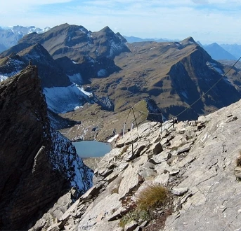 Der Klettersteig wurde in der unteren Hälfte bis oberhalb der Leitern nach den neusten Klettersteignormen saniert (der obere Teil wird nächstes Jahr erneuert)! Übergang Grossi Chrinne wurde auch mit durchgehendem Seil und Tritten in den Platten ausgerüstet.