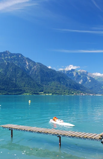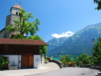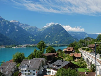 Niederried, point de départ de la randonnée, est facilement accessible par la Zentralbahn depuis Interlaken Est. En été, l’arrivée en bateau est vivement recommandée. Le parcours de randonnée suivant peut ainsi être vécu sous un tout autre angle. À partir de Niederried, la randonnée est signalée en continu en direction d’Interlaken. La première partie jusqu’à Ringgenberg/Säge a été intégrée en 2018 au réseau officiel des sentiers de randonnée. En passant par la charmante plage, on arrive peu après les derniers bâtiments à la merveilleuse aire de repos Entenstein. Après une portion en forêt, le sentier longeant le lac monte légèrement de façon régulière, traverse la voie ferrée et se termine peu avant Ringgenberg à la route principale. On la suit sur 300 mètres jusqu’à Ringgenberg/Säge. Le centre de ce petit quartier est une grande aire de jeux entourée par les arches du viaduc ferroviaire remarquable. Le viaduc est contourné par-dessous et la randonnée se poursuit par le chemin caché Bühliweg et un magnifique passage en forêt. Suit ensuite une courte descente vers le lac. Puis vient un tronçon varié le long du lac, avec de belles possibilités de s’arrêter, jusqu’à la station de bateaux de Ringgenberg. Juste au-dessus, trônent l’église et la ruine du château de Ringgenberg. Il faut absolument visiter ces deux bâtiments et monter sur les murs restaurés de la ruine. Depuis cette construction ressemblant à une tour, la vue sur le lac de Brienz aux reflets bleu-vert est excellente. La randonnée continue ensuite sur le chemin balisé Katzenpfad jusqu’à Goldswil/Katzenpfad. Là, on se trouve à l’extrémité inférieure du lac de Brienz, avec la sortie de l’Aar et le pont ferroviaire. En passant sur ce pont en fer et le long de la rive sud de l’Aar, on atteint en quelques minutes la gare d’Interlaken Est. Le sentier de randonnée suit un itinéraire un peu plus varié le long de la rive nord de l’Aar jusqu’à la station de base du Harderbahn. De là, on traverse l’Aar et via le jardin anglais, on rejoint également en quelques minutes la gare d’Interlaken Est.