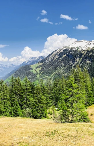 Dès le début, la randonnée propose des points de vue superbes entre Aeschi et Aeschiried, à proximité du Niesen, la célèbre montagne pyramidale au bord du lac de Thoune. Après de merveilleux panoramas sur le Frutigland, une petite route en pente bifurque bientôt vers le ruisseau Suld et suit le fleuve en direction de la vallée. Une fois arrivés dans la prairie de Suld, on se trouve en plein cœur de la réserve naturelle de la vallée de Suld et la traversée de la prairie mène au restaurant d’altitude de Suld. Les greniers centenaires situés sous des érables vénérables servent de caves à fromage pour les alpages environnants. Il est maintenant temps de commencer la montée dans la forêt des gorges de Latrejebach. Vous aurez bientôt une vue imprenable sur le fabuleux Pochtenfall. Après la traversée des prairies, on arrive aux chalets de Schlieri. De petites cascades égaient le chemin jusqu’à Mittelberg. Situé sous les barres rocheuses abruptes de Schwalmere et les pentes verdoyantes du Dreispitz,l’alpage de Latreje est l’un des plus grands de l’Oberland bernois. À partir de Mittelberg, le sentier commence à monter en lacets serrés jusqu’au col de Renggli, entre Schwalmere et Morgenberghorn, offrant une vue surprenante sur le lac de Brienz depuis la verte vallée de Saxet. La montée sur le versant le plus élevé exige de faire preuve de prudence. Un chemin monte ensuite aux chalets de Mittelberg. La randonnée se termine avec la montée suivante depuis le flanc de la vallée au-dessus de Bergmatten et qui mène à Innerfeld et au village de Saxeten. Il faut faire preuve de prudence pendant certains passages, déconseillés en cas de pluie, de neige ou de brouillard.
