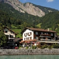 Vue sur le lac de Brienz, vers l'ouest, à l'arrière-plan Iseltwald, Bönigen, Interlaken. A droite, l'église de Brienz.